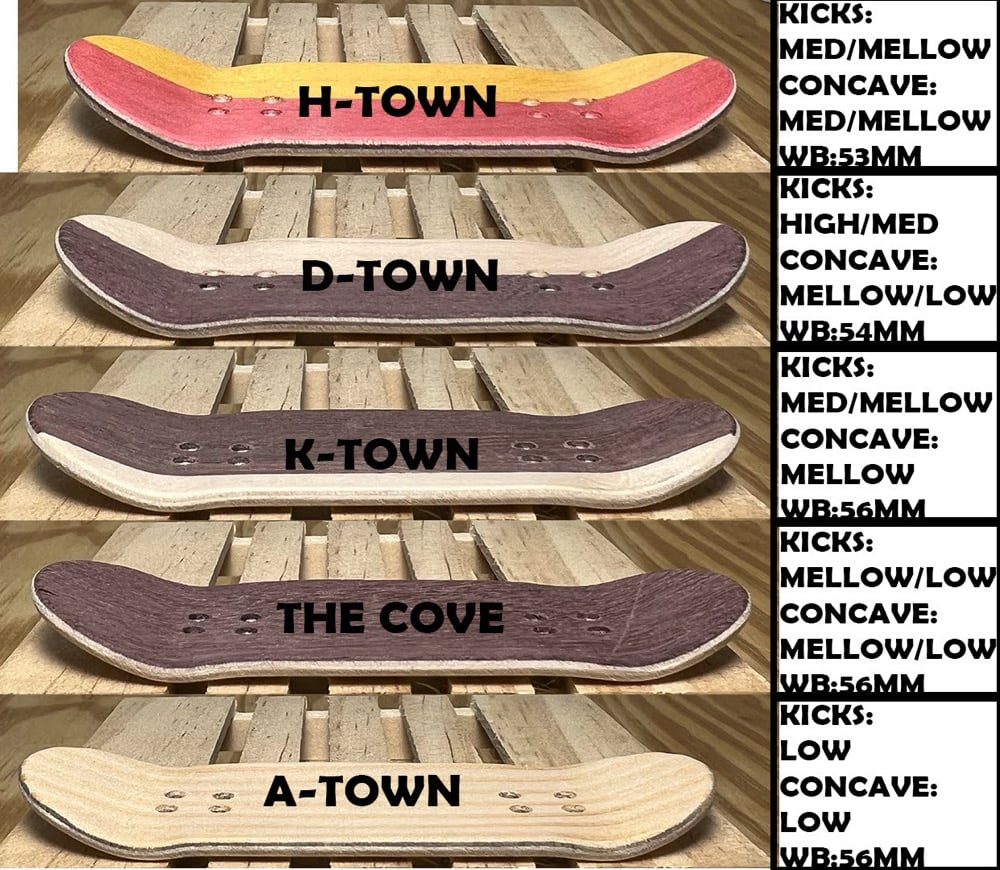 H-TOWN: Medium kicks/ Medium concave/ Shorter wheelbase/ 32x96,34x97